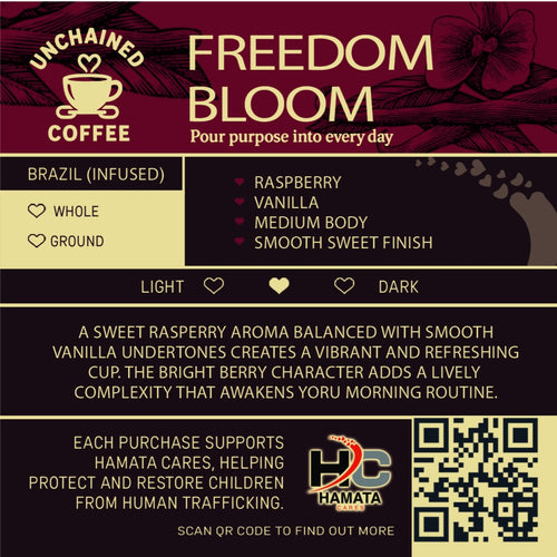 Unchained Coffee is committed to making exceptional coffee while supporting an important cause. We aim to create a positive impact by collaborating with HamataCares.org to combat human trafficking through education, prevention, and recovery after rescue.
